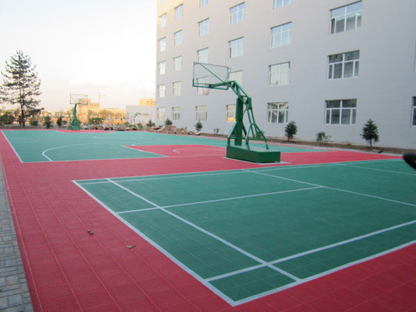 耐用性:該產品所用原料聚丙稀(PP)為高強度材料,加入具有抗紫外線輻射、抗氧化、抗寒等原料的改性聚丙稀,使該產品具有耐壓、耐沖擊、耐高低溫、使用壽命長等優點。耐候性極高,不怕日曬高溫、雨淋潮濕、冰雪嚴寒、永不翹曲剝落變形。沒有氣候地域限制,雨后場地不積水。